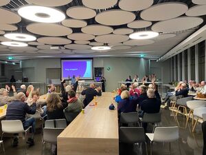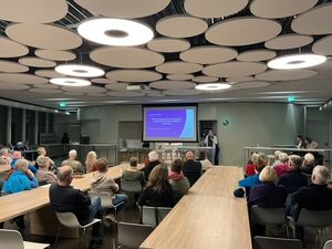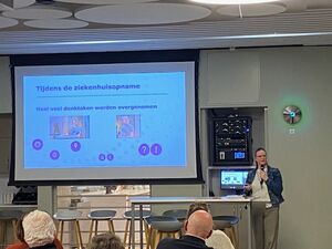 Afgelopen dinsdag (20 januari) volgden zo'n 90 mensen de lezing over niet-aangeboren hersenletsel en de vaak onzichtbare gevolgen daarvan. Het was een interessante en informatieve avond waar de presentaties van de sprekers uitnodigden tot veel vragen vanuit de zaal. Geboeid luisterde men ook naar het verhaal van ervaringsdeskundige Marjan. Zij kreeg afgelopen najaar een herseninfarct en vertelde hoe zij nu probeert haar weg te vinden in een leven waarin zij onder andere veel last heeft geluid- en lichtprikkels. Daarom wapperden de aanwezigen na afloop van de presentaties met de handen in plaats van klappen. De belangstelling voor de lezing was zo groot (bijna 30 mensen stonden op de wachtlijst) dat er we overwegen voor de zomer deze te herhalen.
